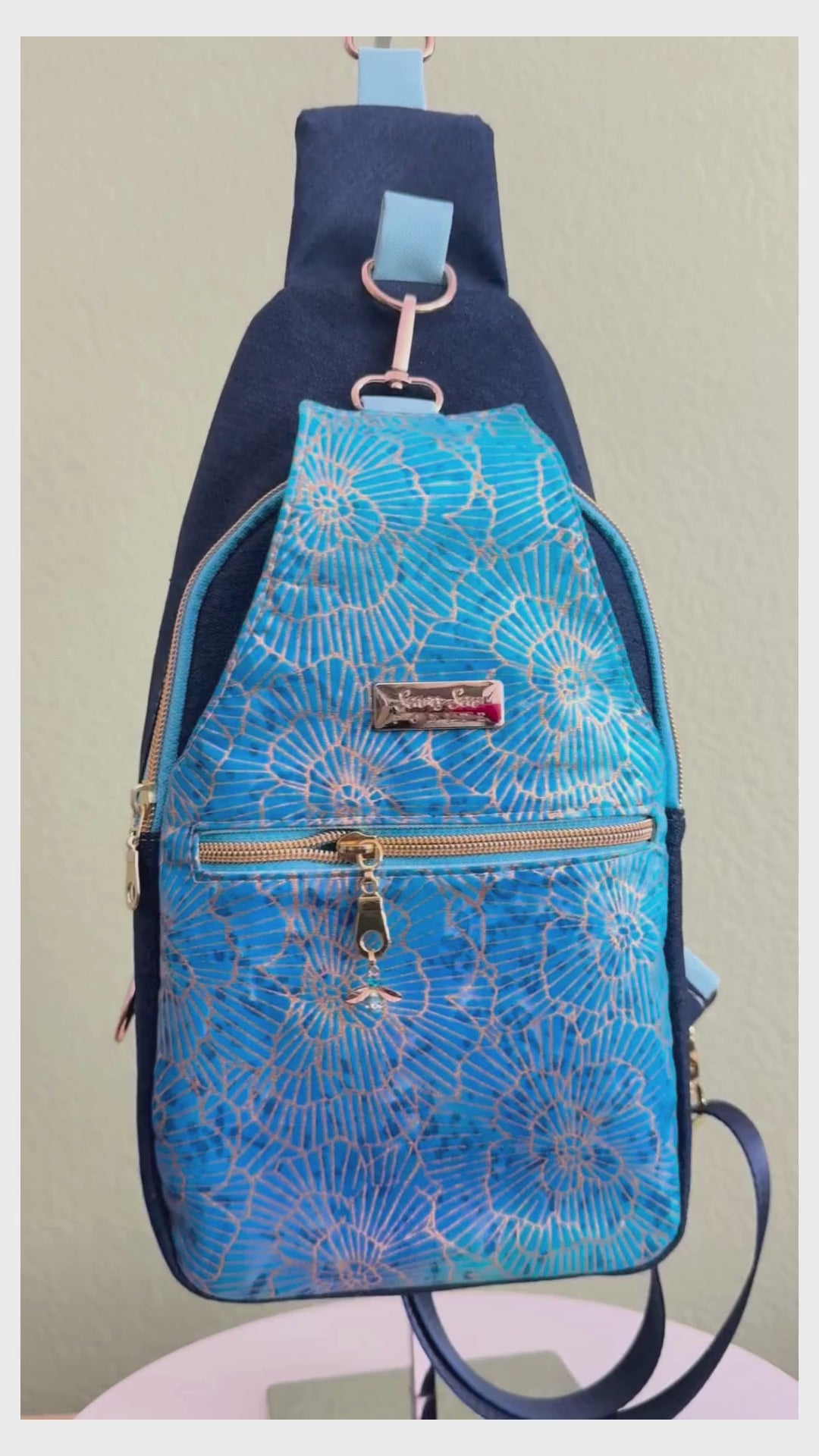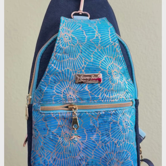 This sling bag allows for hands-free convenience and offers supreme comfort. With an adjustable strap for your preferred length. Designed with dark blue denim and accented with beautiful nature fabric, perfect for any occasion.