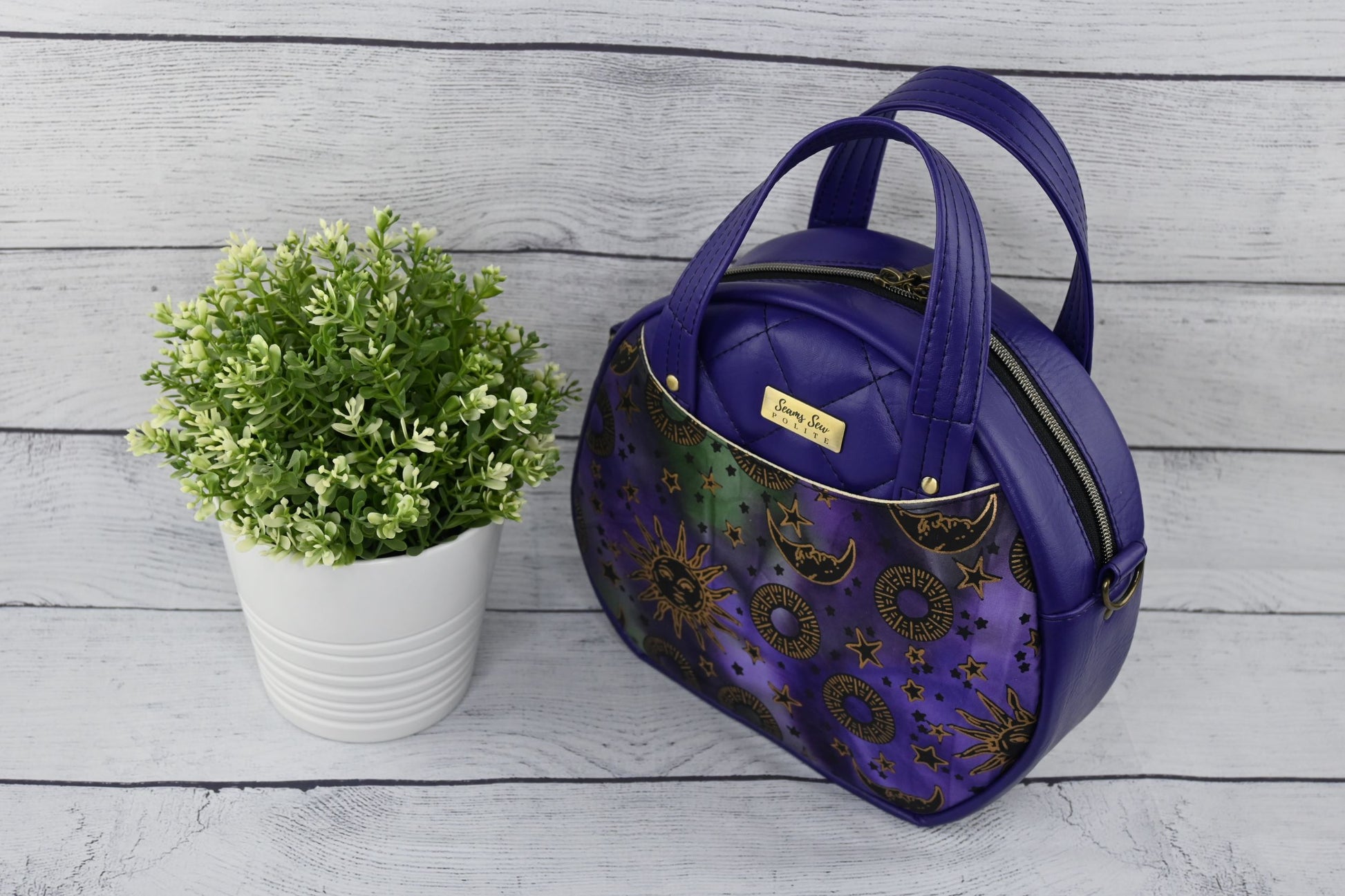 This bag's external is made of both vinyl and Batik fabric and features 2 exterior slip pockets for quick grab items such as a cell phone, keys or glasses. The interior is lined with quilted cotton and finished with an overlayed zipper and slip pocket.