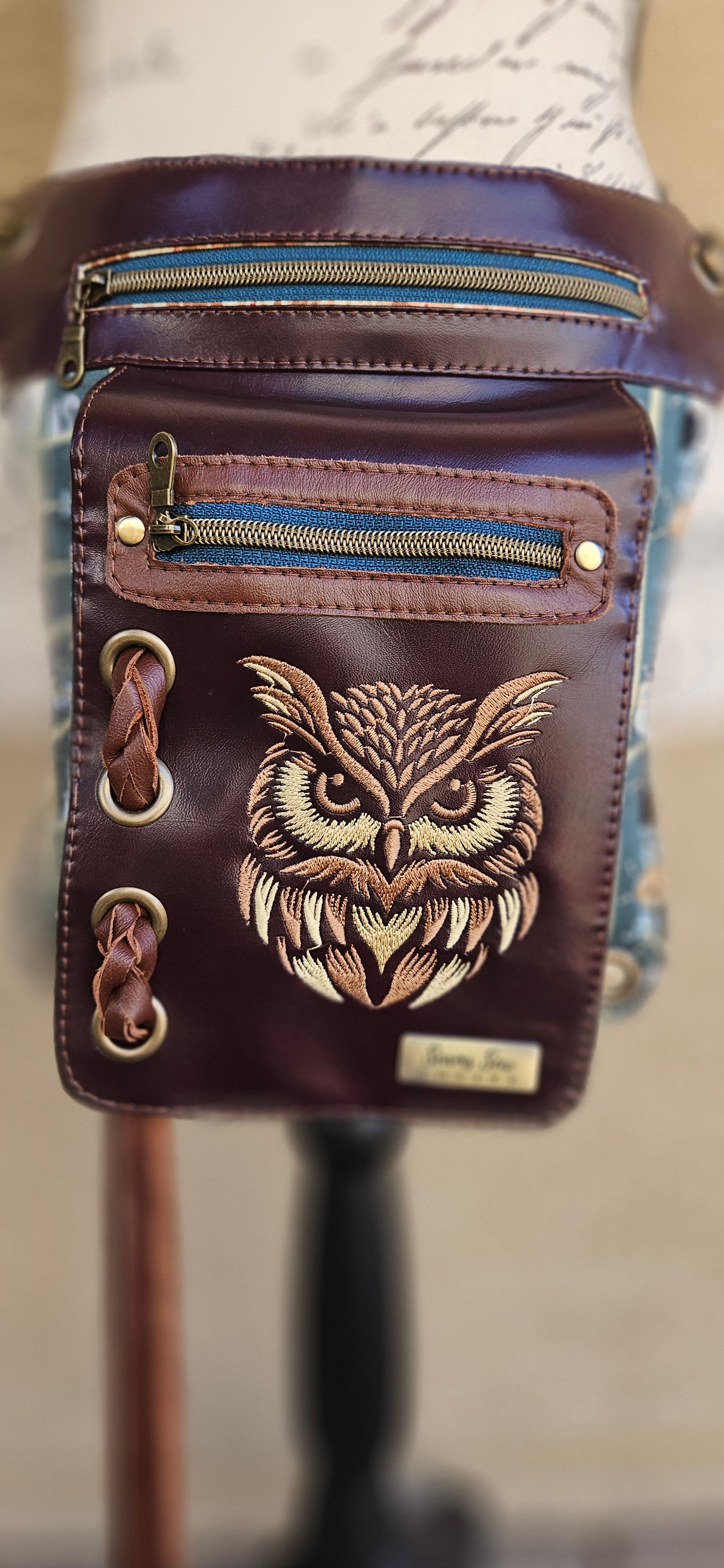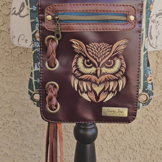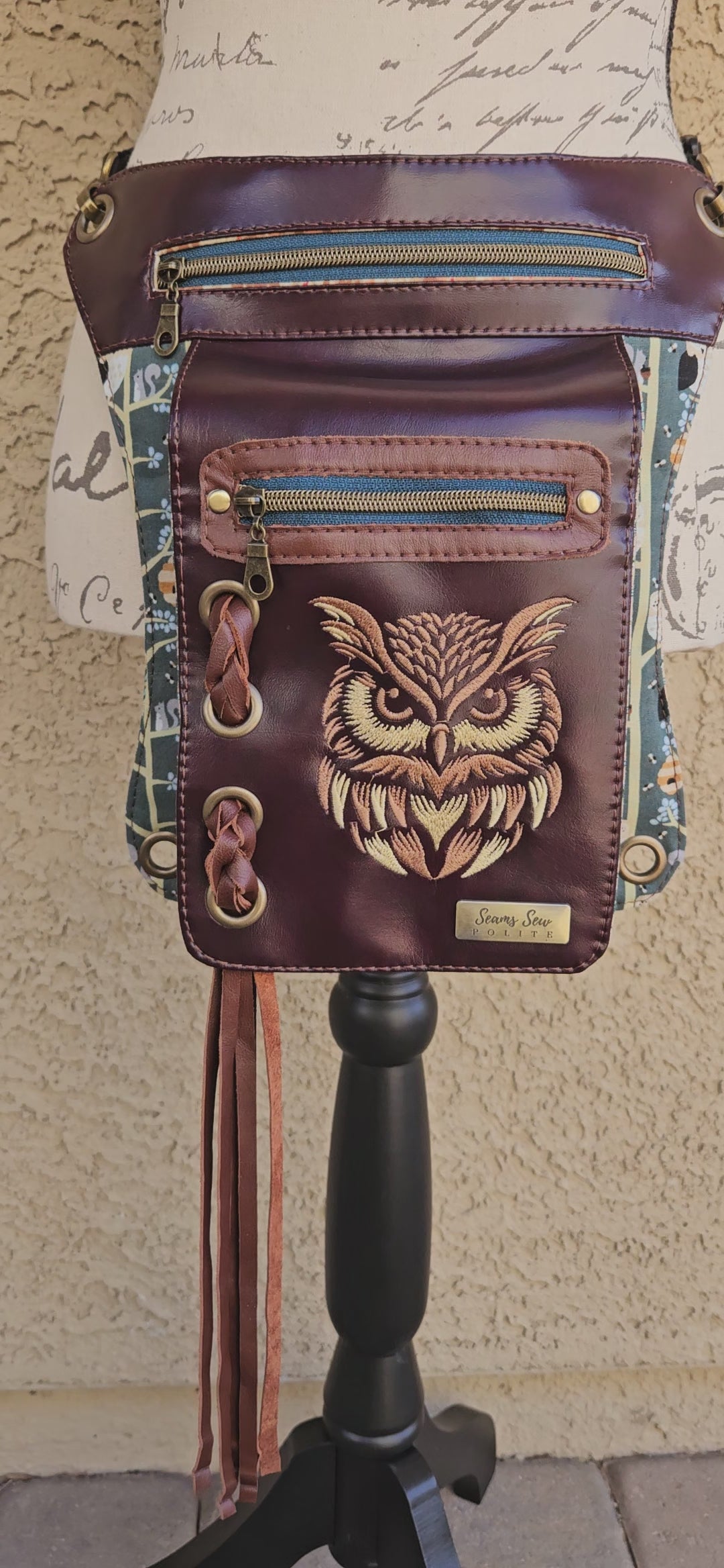 Embrace elegance with our Sophisticated Sling / Hip Bag. Featuring an embroidered owl on the front panel, this hip bag exudes exclusivity. With 3 zipper pockets, it offers plenty of storage options. Crafted with a blend of faux leather and woven cotton fabric, it's both chic and durable. Elevate your style game today.